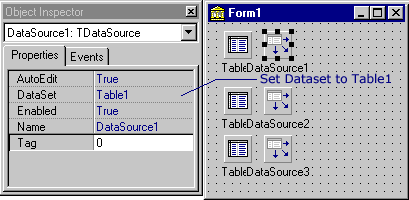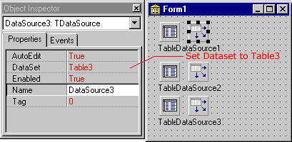 Click on the first data source to change its DataSet to Table 1, as shown above.