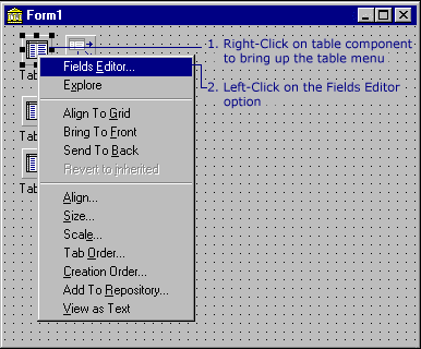 Right click on Table 1 to bring up the menu seen above.