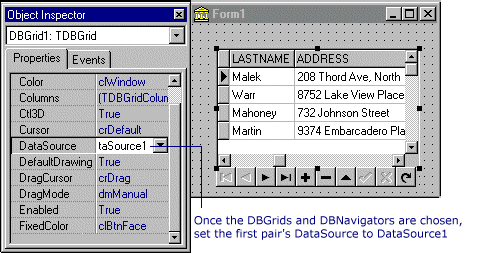 To set the grids and navigators out, go up to Data Controls Tab and click on