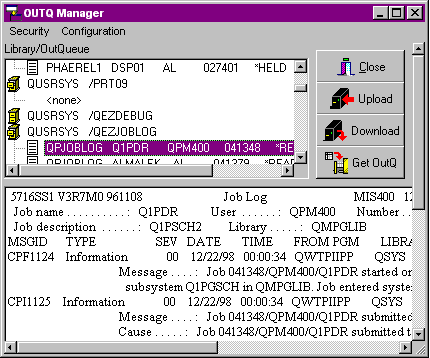 OutQ Manager is a tool designed to download spool files from AS/400 outqueues and save them on a PC either on a hard drive, on a CD-ROM, or any tape backup system. Further, the spool file can be edited on the PC side and saved as a new copy of the original. So in essence is a way for an enduser to move the contents of any outqueue to any PC media automatically without having to use save file tranfer, and other complicated AS/400 features.